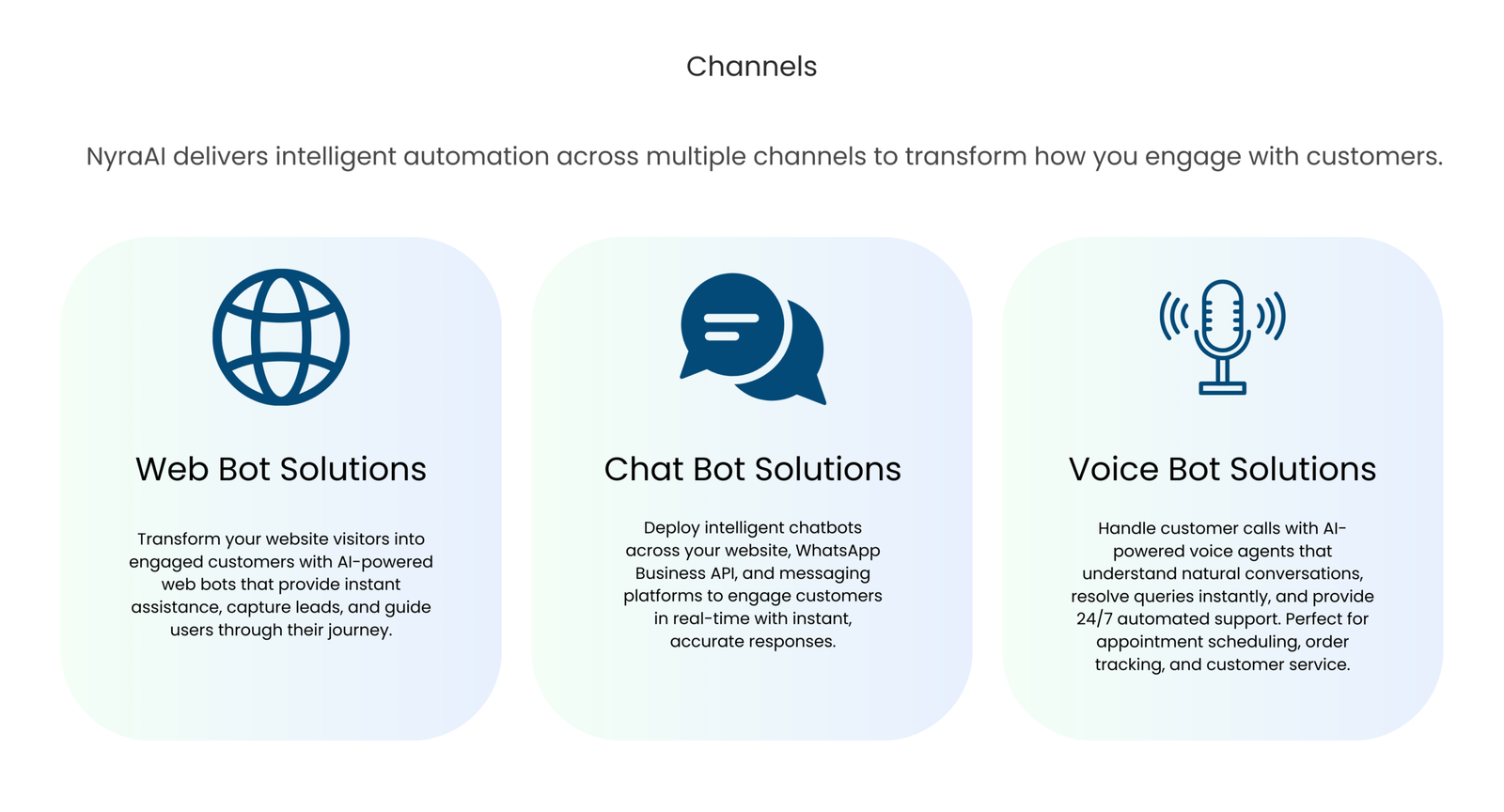 NyraAI delivers intelligent automation across multiple channels to transform how you engage with customers.