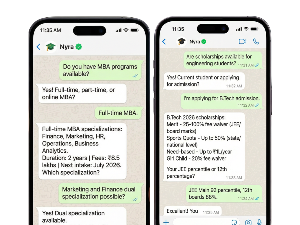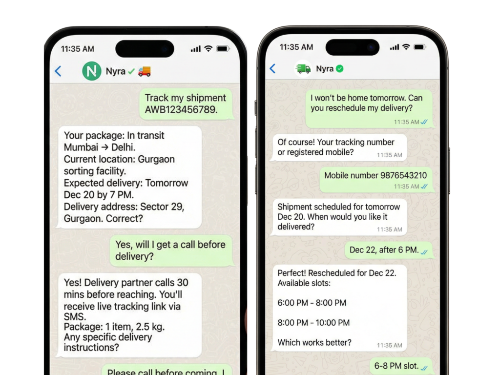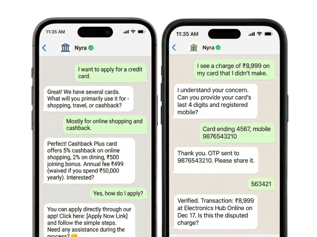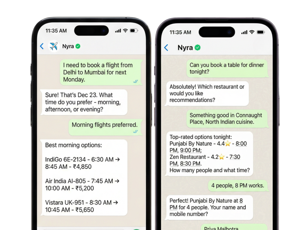 Transform your business operations with AI-powered conversational solutions. NyraAI delivers intelligent automation across web chat, voice calls, and messaging channels